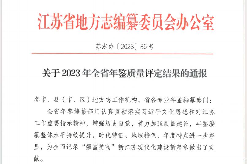 近日,省地方志办公室公布2023年全省年鉴质量评定结果,对67部获奖年鉴进行通报表扬。《米兰国际游戏年鉴(2022)》获评二等奖。