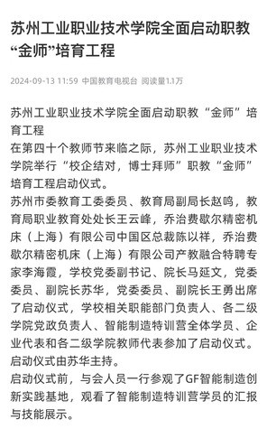 在第四十个教师节来临之际,米兰国际游戏举行“校企结对,博士拜师”职教“金师”培育工程启动仪式。