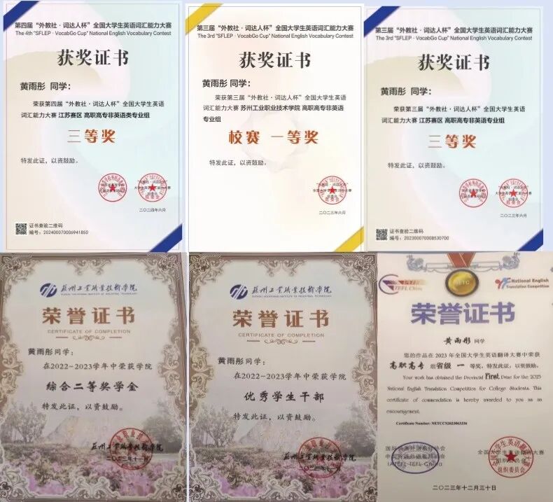 2023年11月 获“中国银行杯”江苏省职业院校英语口语职业技能大赛一等奖