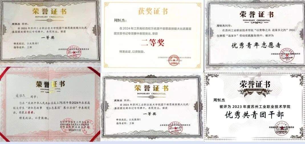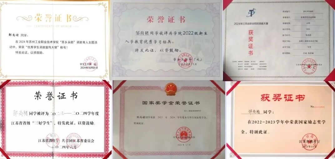 学习刻苦,勇于创新。他连续两年智育成绩排名专业第一,获学院综合一等奖学金。同时,他还荣获省技能大赛一等奖,被评为江苏省“三好学生”,累计取得国家级荣誉1项,省级荣誉3项,校级以上荣誉10余项。