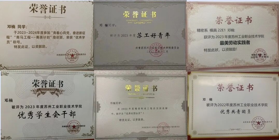 邓楠,女,汉族,中共预备党员,精密制造学院模具设计与制造专业2022级学生。目前已被宿迁学院录取。